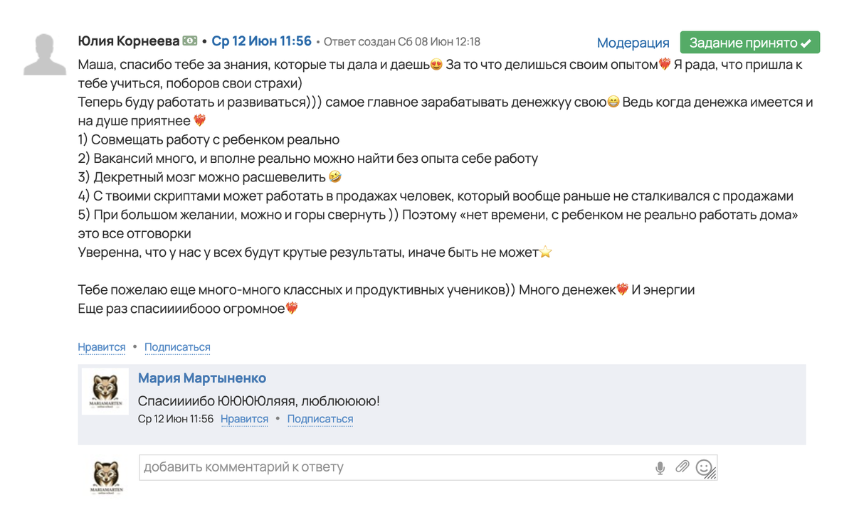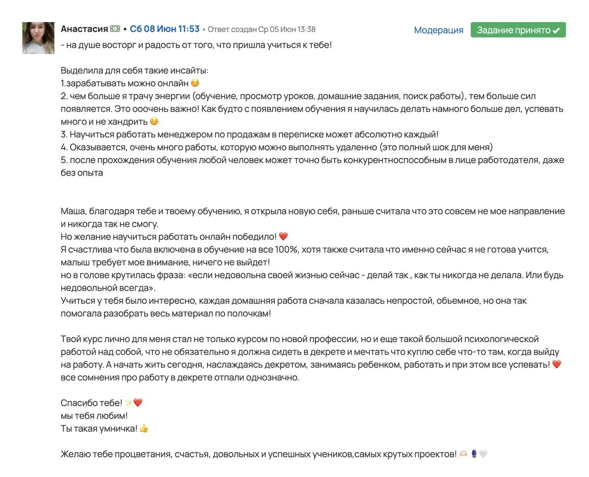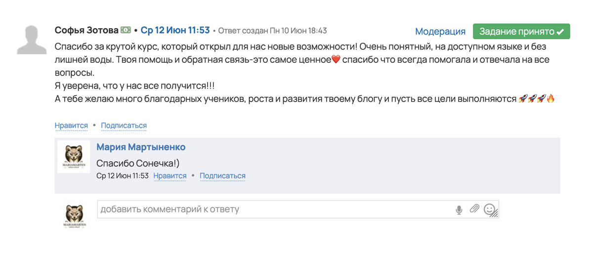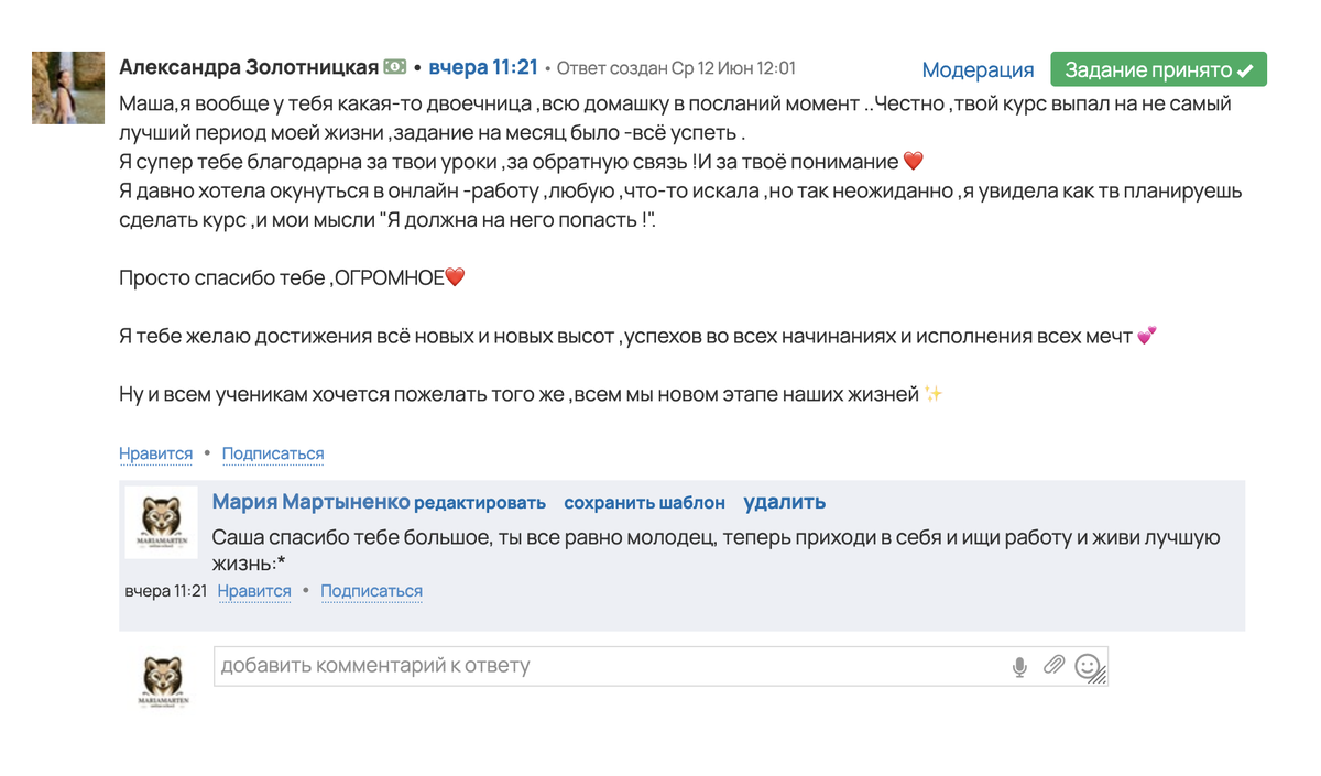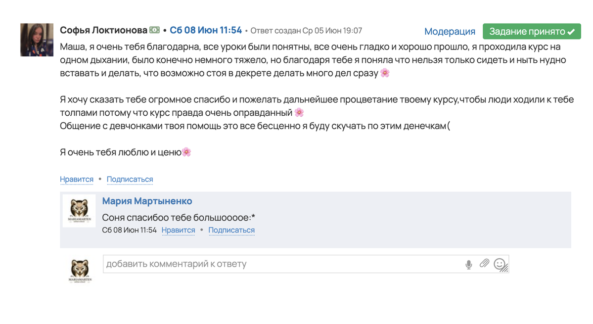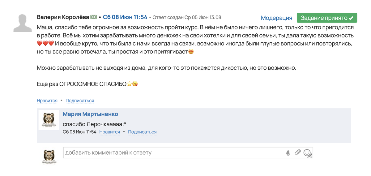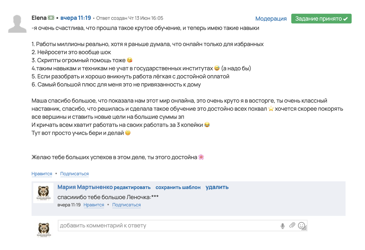 - Обратная связь и поддержка от меня и кураторов.